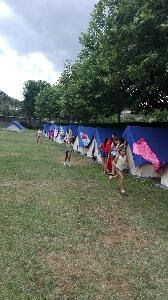 Este año duermen en tiendas de campaña, y les ha encantado. Hoy por la mañana, han conocido a sus monitores, disfrazados de espartanos, las instalaciones, se han presentado y han montado sus tiendas. Luego han tenido tiempo para un chapuzón y jugar, antes, a las 12:30, les dieron una pieza de fruta a cada uno y de comida, unas ricas lentejas y pollo con ensalada.